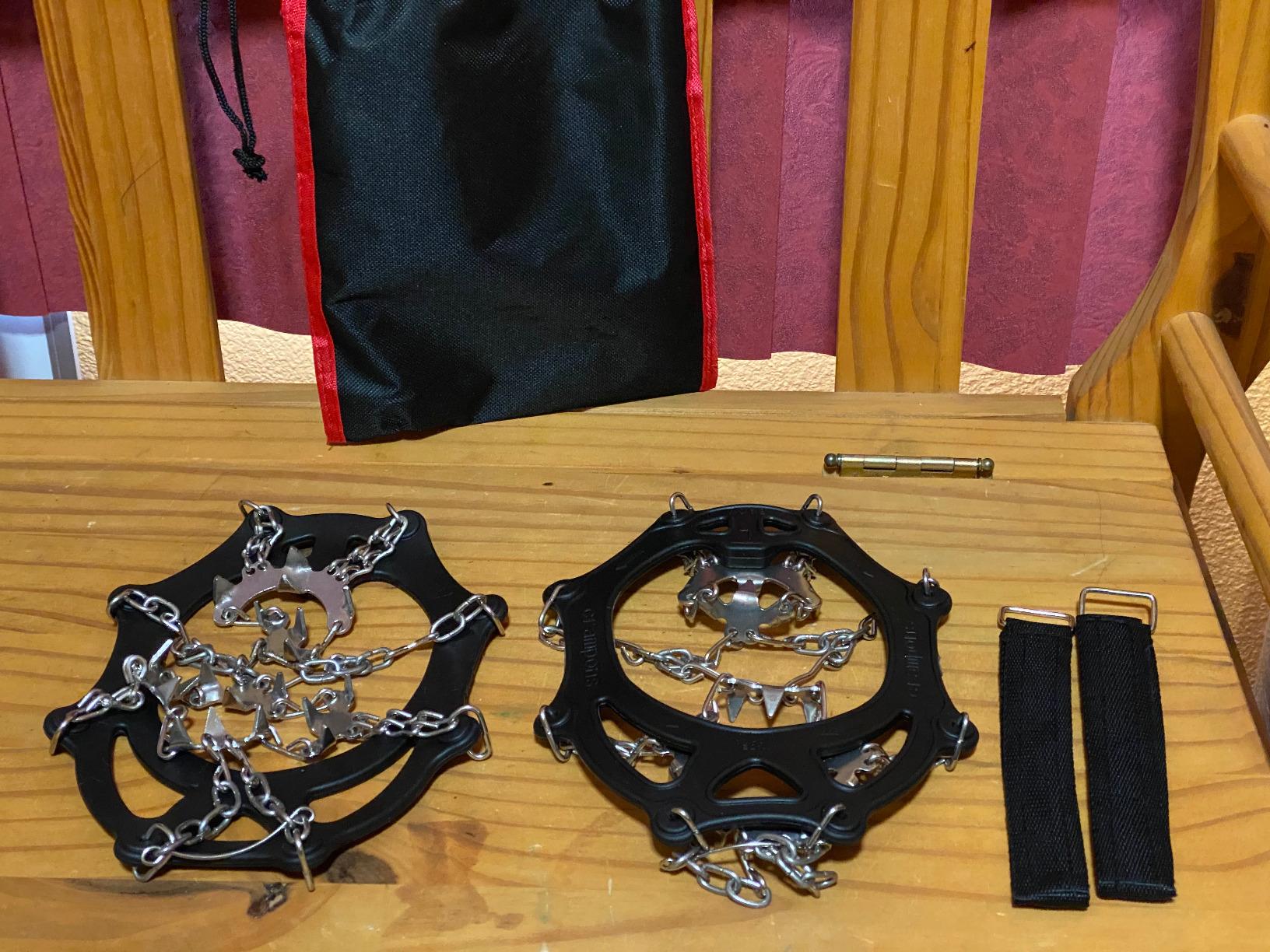 The crampons are small size, light weigh and easy to carry for can be put in a small storage bag and even pockets. The package includes 1 pair of Crampons and 1 piece of carry Bag. Ergonomically unique design ensure the chain will not slip and grip your steps. You can walk easily and safely in inclement weather.