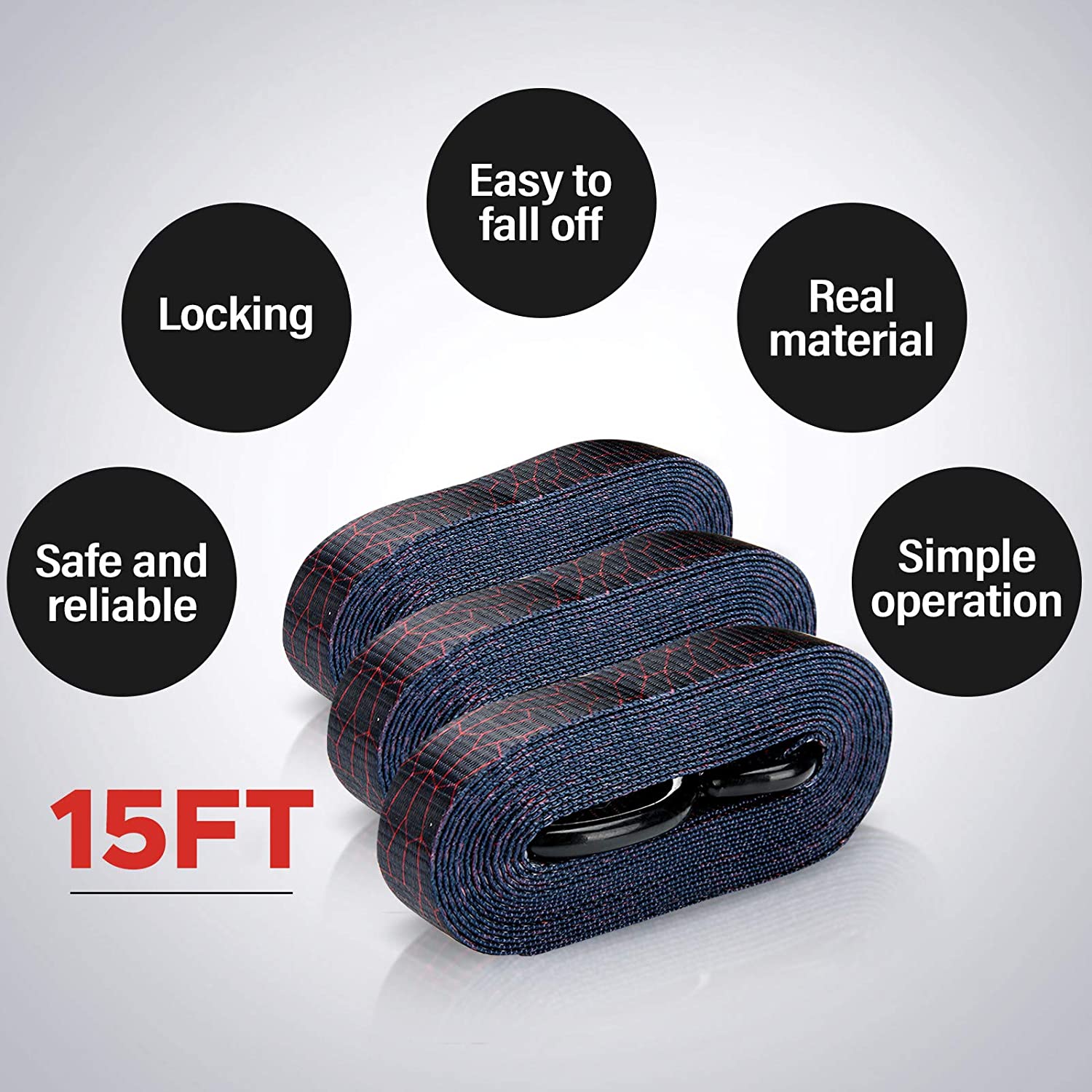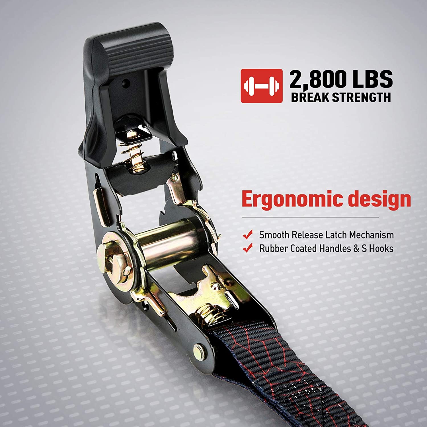 Audew ratchet straps 4 pack with 2800 Lbs Breaking strength and 800 Lbs Load capacity Stronger than almost products on the market, 15 feet in length and 1 inch in width to secure even the biggest loads, ensure your Motorcycle, ATV, UTV or cargo secure when Towing!