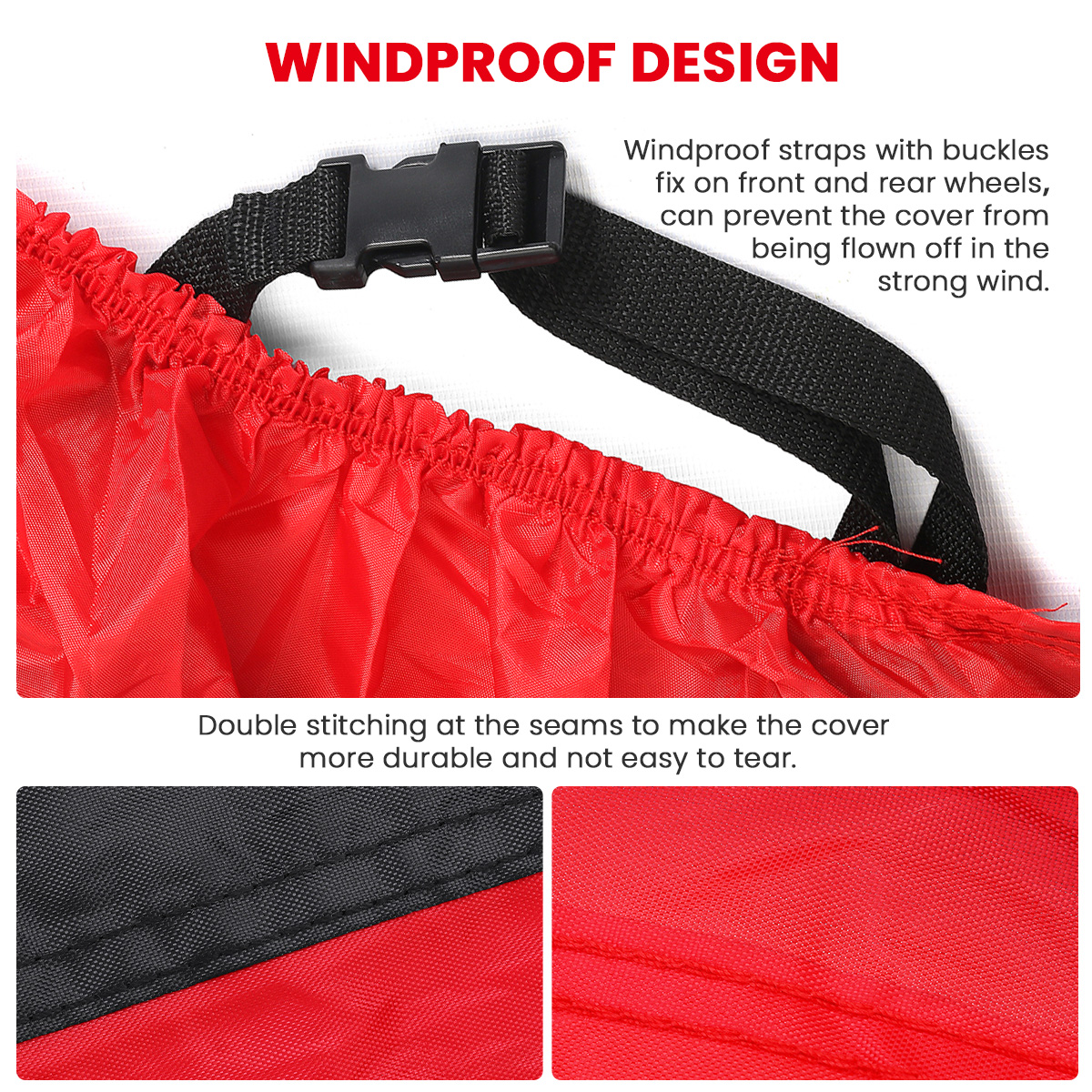 -The two-wheel strap design is better to secure the cover, and it is more resistant to strong winds.