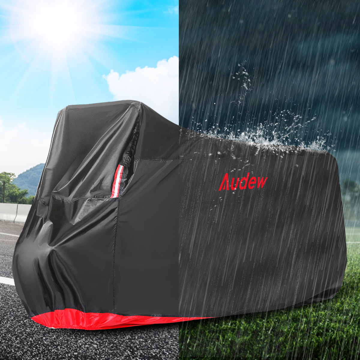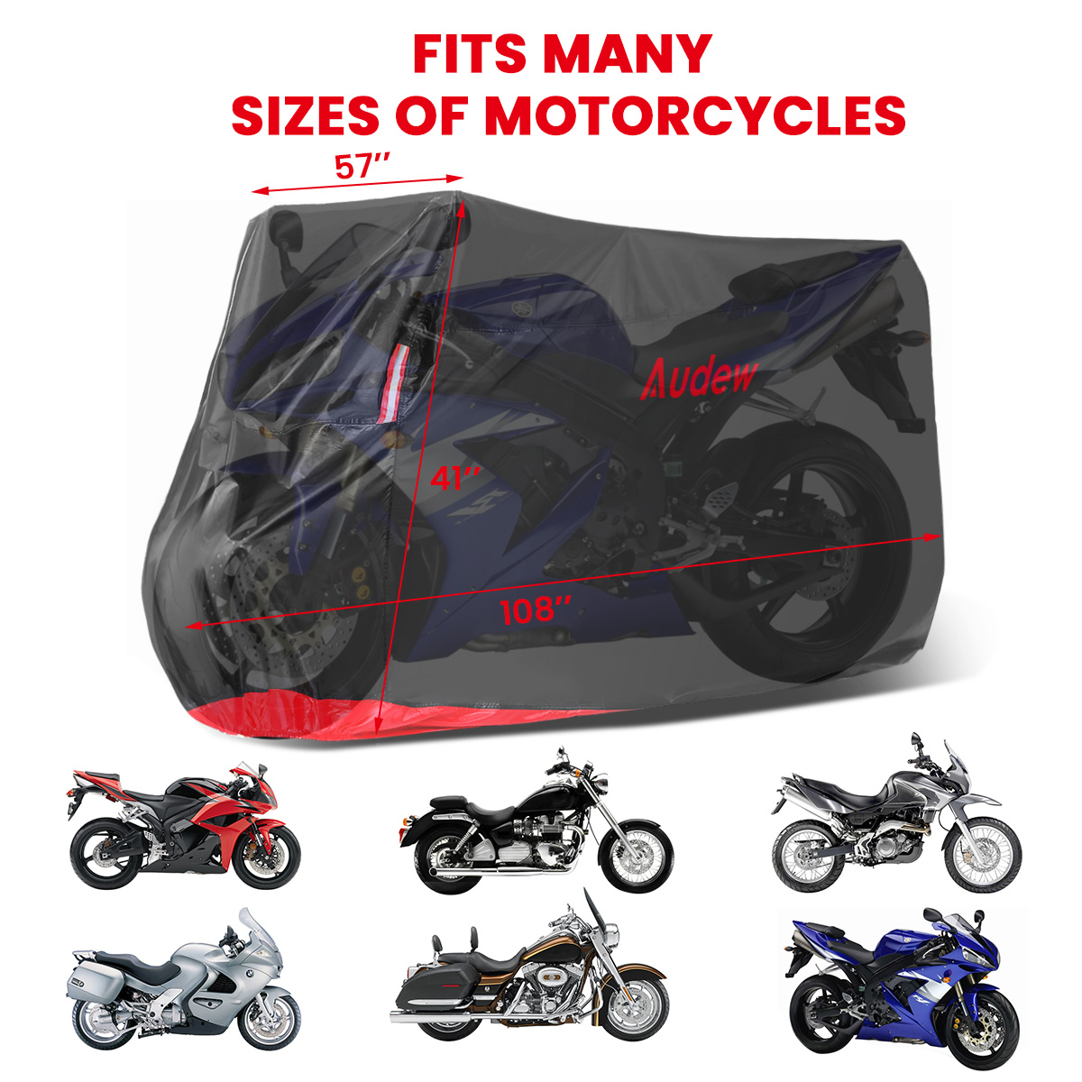 Audew 210D Oxford Fabric Motorcycle Cover Waterproof Outdoor for Honda, Suzuki, Kawasaki, Yamaha, BMW(Fits up to 108")
