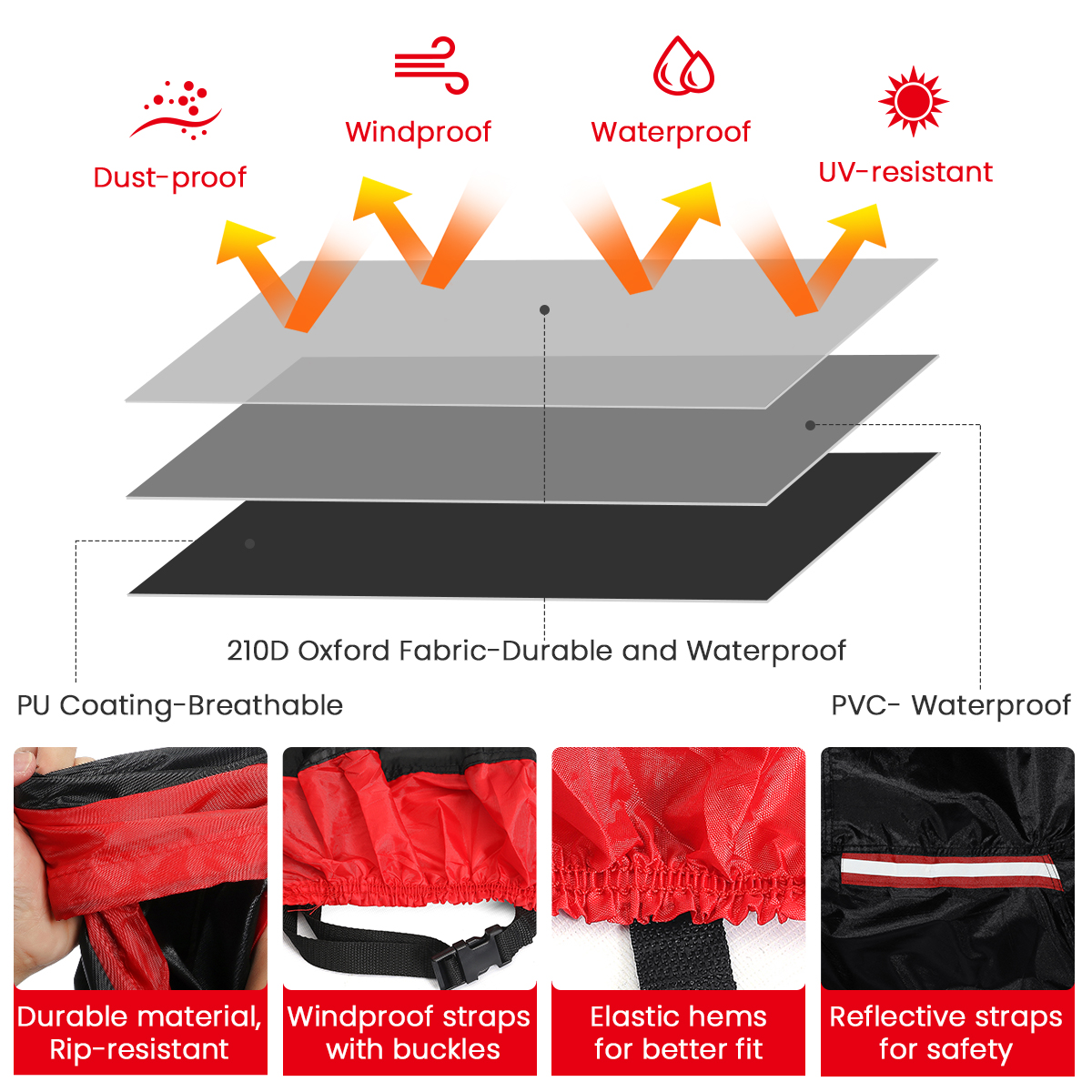 -Made of high-density 210D Oxford cloth, light weight, but sturdy, very easy to put on by one person.