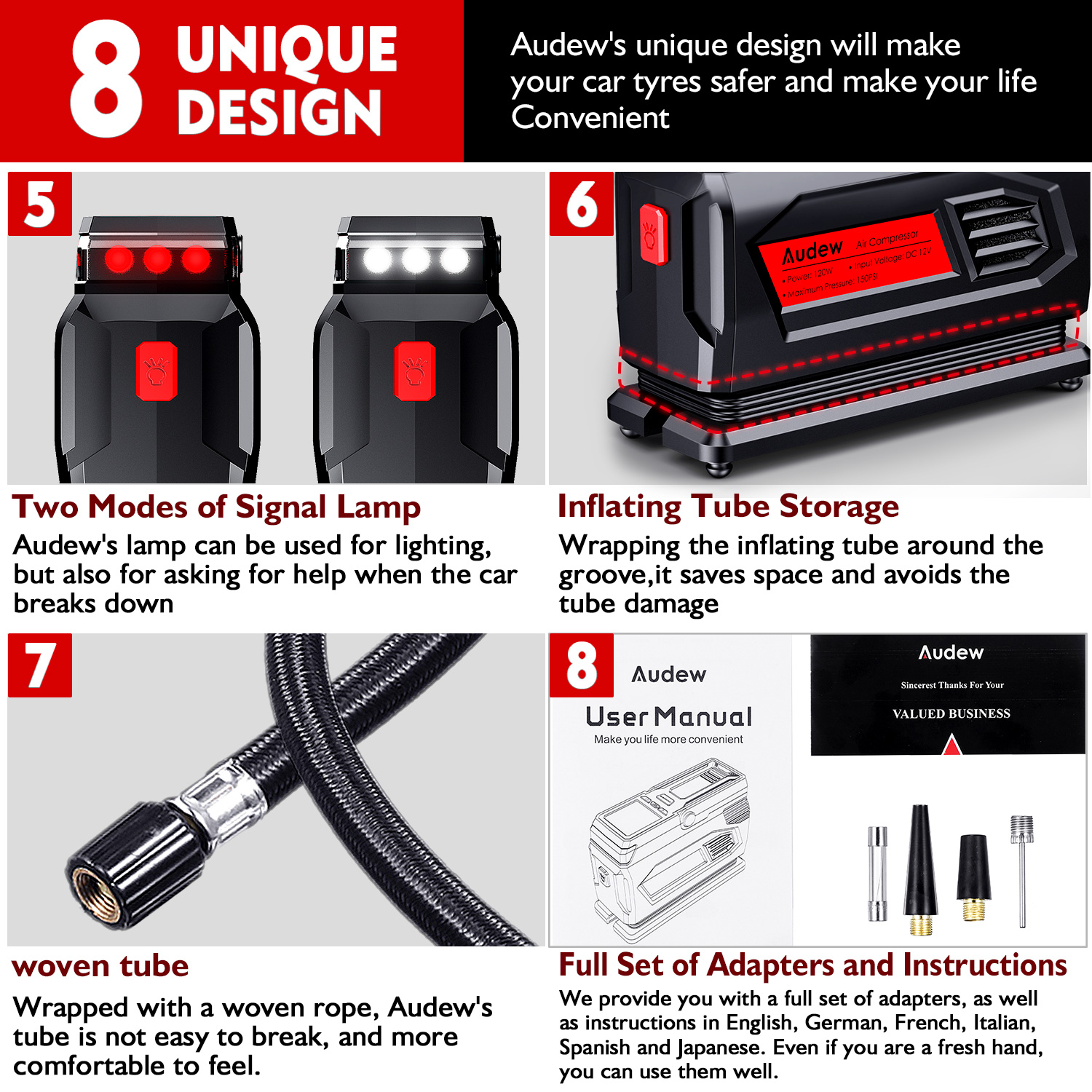 Audew Air Compressor Tire Inflator - 12V Heavy Duty Portable Wheel Air Pump for Car TiresAudew Air Compressor Tire Inflator - 12V Heavy Duty Portable Wheel Air Pump for Car Tires